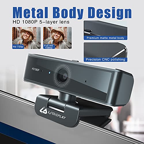 LPDISPLAY 1080P Webcam mit Mikrofon, 60 FPS USB-Webcam, 2 Mikrofone, Streaming mit Privatsphäre, 90°-Ansicht, Metallgehäuse-Design für Videokonferenzen, Aufnahme und Telefonieren