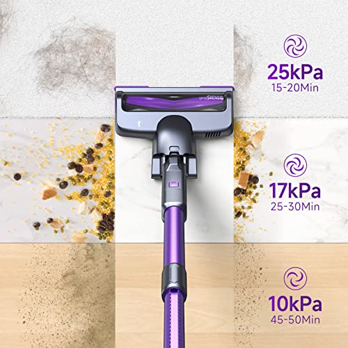 50 Min. lange Laufzeit: Dank 2200mAh*7 Akkus kann dieser Stielstaubsauger innerhalb 4 Stunden vollständig aufgeladen werden. Dann bietet 20min Laufzeit im Max Modus mit 25kPa, 30min in Mid Modus mit 17kPa und 50min in Mini Modus mit 10kPa. Austauschbares Batteriedesign erleichtert das Laden und Ersetzen des Akkus von dem Staubsauger.