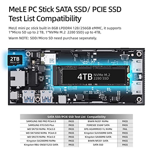 【Expandable Storage,with unblocked bios】PCG02 Pro stick pc supports to expandable Storage via 1*M.2 2280 NVMe SSD and SATA SSD, 1* micro sd card. Der winzige PC ist mit einem uneingeschränkten Bios ausgestattet, er unterstützt das Booten aus dem Netzwerk, PXE-Boot/iPXE-Boot, Booten von USB in UEFI (nicht Legacy), er unterstützt auch automatisches Einschalten, Wake On LAN/WOL, RTC-Wake, BIOS-Reset/CMOS-Reset, deaktivieren Sie Quiet Boot.