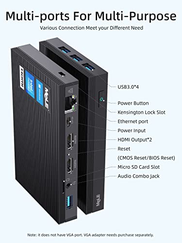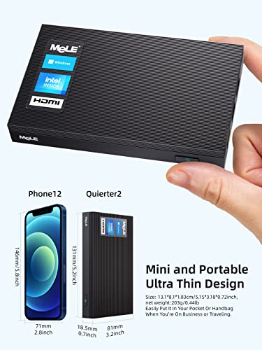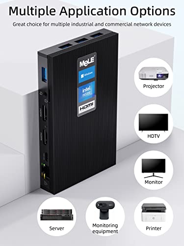 【Lüfterlos und Klein】Der MeLE Mini-PC hat etwa die Größe und Dicke eines Mobiltelefons und macht Ihren Computer-Desktop sauberer und einfacher. Das lüfterlose Design ermöglicht es Ihnen, Ihre gute Zeit zu genießen, ohne durch Lärm gestört zu werden.