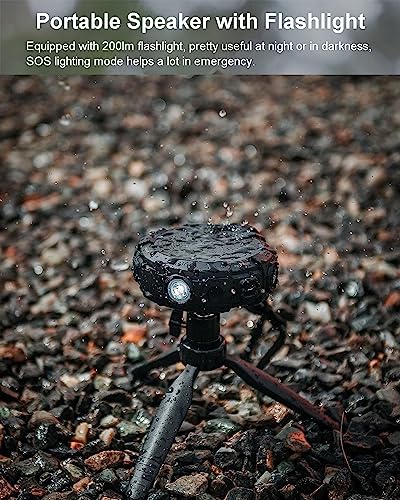 MIFA Tango Tragbarer Bluetooth-Lautsprecher mit Taschenlampe, IP67 wasserdicht und stoßfest, Basslautstärke Bluetooth 5.3, 25 Stunden Spielzeit (Schwarz)