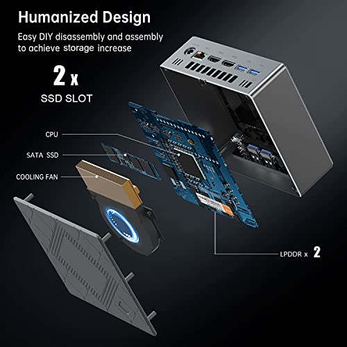 Der Mini-PC ist mit 16GB DDR RAM und 512 GB SSD ausgestattet, ermöglicht es Ihrem Desktop-Mikro-PC, verschiedene Hochleistungsaufgaben gleichzeitig auszuführen, mehr zu erreichen mit Multitasking über DDR4-Speicher, ideal für den reibungslosen Wechsel zwischen Anwendungen mit hoher Auslastung. Sie können den Speicherplatz auch mit M.2-SSD-Schnittstelle oder 2,5-Zoll-SATA-SSD auf bis zu 2 TB erweitern (beide nicht im Lieferumfang enthalten)