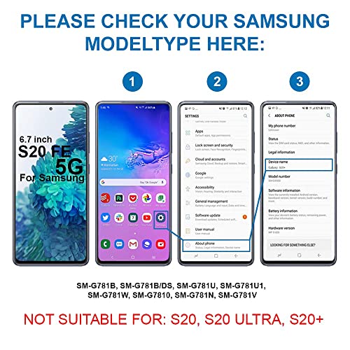 Kompatibel mit Samsung Galaxy S20 FE / S20 FE 5G 2020 SM-G780F, SM-G780F/DSM, SM-G780G / SM-G781B, SM-G781B/DS, SM-G781U, SM-G781U1, SM-G781W, SM-G7810, SM-G781N, SM-G781V Wichtig Bitte überprüfen Sie vor dem Kauf dieses Artikels die Modellnummer Ihres Geräts. Sie finden den Modelltyp Ihres Geräts auf Ihrem Gerät und/oder in den Einstellungen.