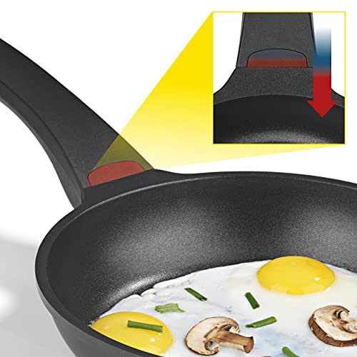 Komplett-Set: 2 Aluguss-Pfannen (24 und 28 cm), 1 Aluguss-Stielkasserolle (18 cm, inkl. Deckel mit Silikon-Umrandung), 2 Aluguss-Töpfe (20 und 24 cm inkl. Deckel mit Silikon-Umrandung)