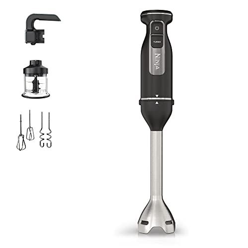 BEINHALTET: Stabmixer, Handrührer und Zerkleinerer, 850-W-Sockel (EU-Stecker), Aufsätze für Stabmixer und Handrührer, 2 Schneebesen, 2 Knethaken, 700-ml-Schüssel mit Etagenklinge und Rezeptanleitung Farbe: Schwarz