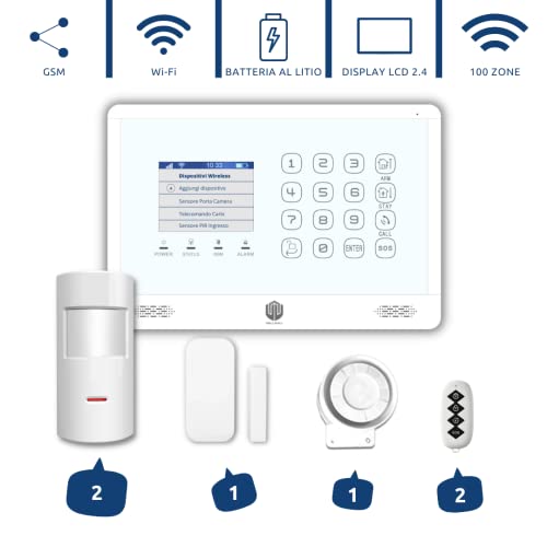 NOVITA ‚Absolute WiFi + GSM SmartLink – Alarmanlage Haus kabellos Wireless Internet Touchscreen GSM mit Sensor Anti Jammer – Menu, Bianco, 1
