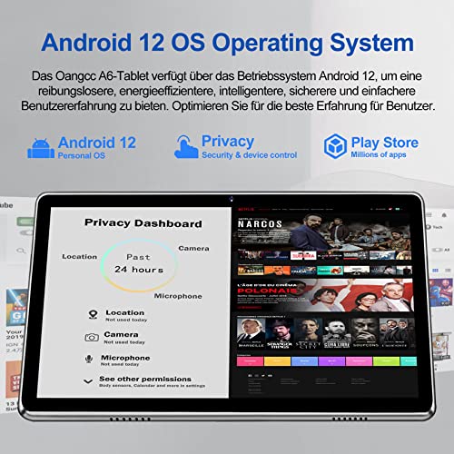 💕〖Leistungsstarkes Android 12-System〗: Das Oangcc-Tablet ist mit dem neuesten Google-Zertifizierungssystem für Android 12 ausgestattet. Sie können Netflix, Youtube, Facebook, Skype, Disney+, Minecraft und andere Programme direkt von Google Play herunterladen. Das Paket enthält 10.1 Neues Upgrade Android 12 Tablet | Schutzhülle | Schutzfolie | Ladegerät | Typ-C-Datenkabel | Kopfhörer | gewöhnlicher Stift | staubfreies Tuch | Benutzerhandbuch.