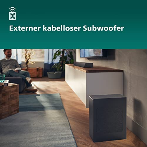 Philips TAB7207/10 Soundbar 2.1 Wireless Subwoofer, Dolby Atmos, Kinoreifer Sound, Satte Und Tiefe Bässe, HDMI ARC, Ultraflaches Design