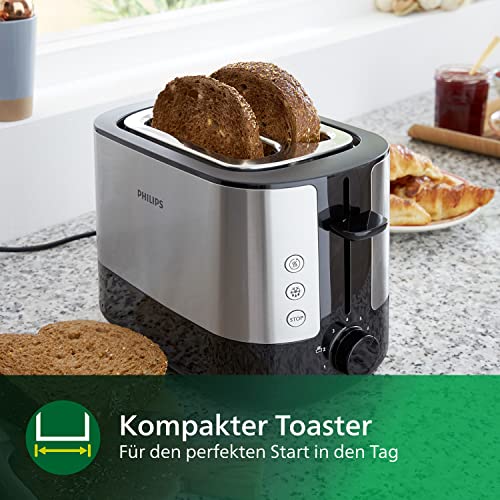 Leckerer, knuspriger Toast: Ob von Hand oder vorgeschnitten – der Philips Viva Collection Toaster liefert unabhängig von der Scheibendicke stets perfekte Toastergebnisse – 10 % breiterer Toastschlitz*