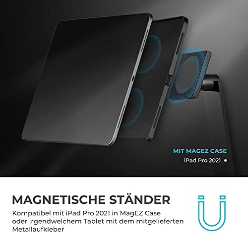 pitaka Magnetisch Tablet Ständer Verstellbare iPad Halterung mit 15W kabelloser Ladestation Premium iPad Halter kompatibel mit MagEZ Case 2 für iPad Pro und Allen Tablets [MagEZ Stand] Schwarz