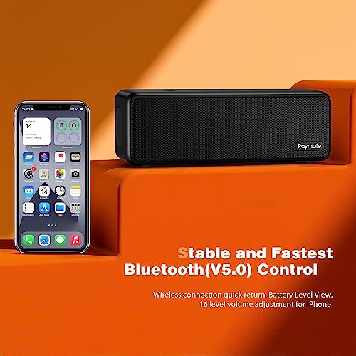 Raymate Bluetooth Lautsprecher Musikbox Tragbarer Bluetooth Box mit Lauter Stereo Sound, Satter Bass,IPX7 wasserdicht Kabelloser Lautsprecher für Zuhause,Draußen,Garten (Schwarz)