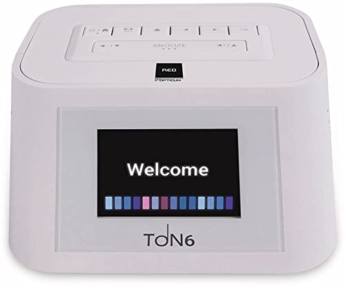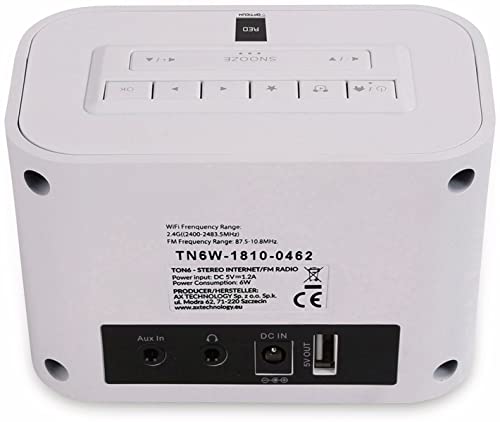 RED OPTICUM Internet / FM Radio Stereo Ton 6 – Holen Sie sich die ganze Welt ins Radio. Das TON4 ist ein Radio, mit dem Sie UKW- und Internet-Sender in glasklarer Qualität empfangen können.Per AUX-IN lassen sich weitere Geräte an das Webradio anschließen. Für einen störungsfreien Musikgenuss besitzt das kleine Radio einen Kopfhörerausgang. MULTITALENT: Das Gerät besticht durch ein schlichtes Design, einfache Bedienung, einer Vielzahl an Weck- & Einschlaffunktionen und ein 2,4 Zoll Farbdisplay – ideal als Küchen-, Bad-, Arbeitsradio oder für das Wohnmobil. EINFACHE BEDIENUNG: Ein 3-fach dimmbarer 2,4 Zoll TFT-Farbbildschirm liefert Ihnen wichtige Informationen zu Wetter, Sender, Uhrzeit oder Signalstärke. Zudem erleichtern eine mehrsprachige Menüführung, sowie eine Vielzahl an Fronttasten die Bedienung des Internet Radios. NÜTZLICHE FUNKTIONEN: Für einen schnellen Senderzugriff verfügt das WLAN-Internetradio über 10 Favoritenspeicherplätze für UKW-Sender und 250 Plätze für Internet-Sender. Die Lautstärke des Weckrufs über Buzzer, UKW- oder Internetradio ist einstellbar. Jeder Wochentag kann dabei einzeln als Weckzeit programmiert werden. Für ein angenehmes Wecken steigt der Weckton sanft im Sekundentakt an. Außerdem erleichtern eine Einschlaftimerfunktion und Relax-Taste mit Entspannungsgeräuschen das Einschlafen. Ein USB-Port dient zum Aufladen von externen Geräten (z.B. Smartphones). Digitales-Radio im Überblick: ✓ UKW- / Internet-Radio , ✓ 10 Programmspeicherplätze für UKW , ✓ 250 Senderspeicherplätze für Internet-Sender, ✓ 2,4 Zoll TFT-Farbbildschirm , ✓ Dual-Alarm (2 Weckzeiten unabhängig voneinander einstellbar) , ✓ Sleep-Timer , ✓ Einschlaf-Entspannungsfunktion , ✓ 3,5mm Kopfhöreranschluss (Klinkenstecker) , ✓ Spannungsversorgung: DC IN 5V, 1.2 A , ✓ Musikleistung: 3W ✓ Verfügbar in schwarz oder weiß . Lieferumfang: Red Opticum Ton6 WLAN Radio Internet / UKW , Netzteil , Kurzanleitung.