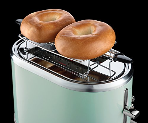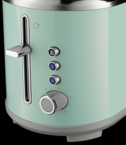 Russell Hobbs Toaster Bubble grün, 2 extra breite Toastschlitze, inkl. Brötchenaufsatz, 6 einstellbare Bräunungsstufen + Auftau- & Aufwärmfunktion, Schnell-Toast-Technologie, 930W, Retro 25080-56