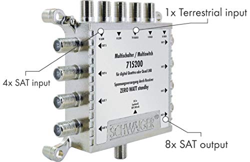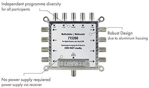 SCHWAIGER 5200 Multischalter SAT-Verteiler 8-Fach SAT-Splitter digital Multiswitch 8-Wege-Verteiler mit externem Netzteil