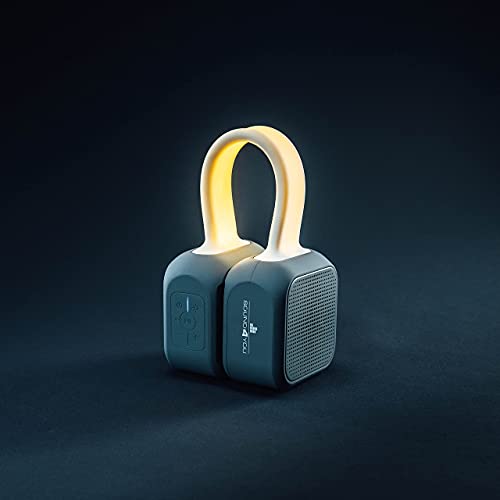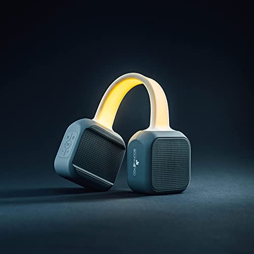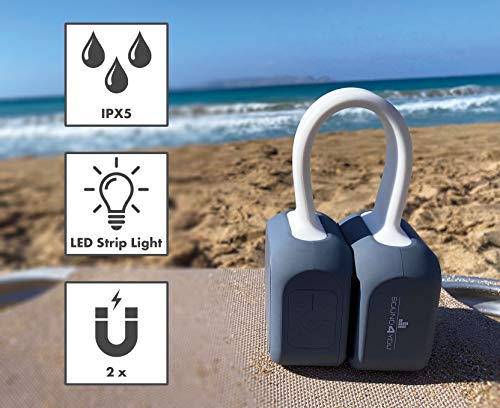 Zwei Lautsprecher verbunden mit einem Lichtband für stimmungsvolle Lichteffekte bei der Musikwiedergabe und praktischer Aufhäng-Funktion durch das Band und den magnetischen Lautsprechern