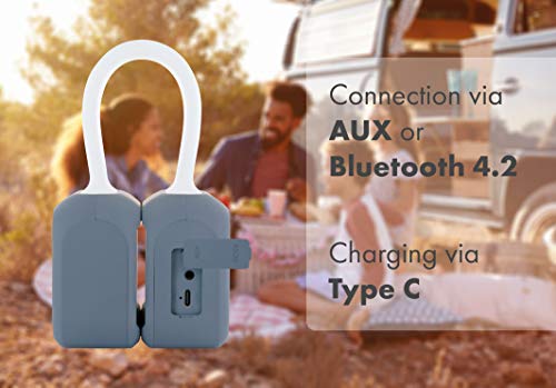 Wasserfestes IPX5 zertifiziertes Gehäuse ideal für draußen und unterwegs im Freien bei Outdoor Aktivitäten, Grillen, Partys, im Garten, auf der Terrasse oder auf Ihrem Balkon