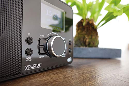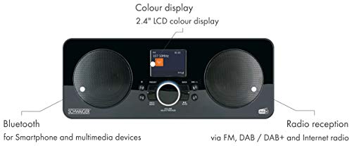 SCHWAIGER DAB650 513 Digitales Radio DAB+ FM WLAN Wecker LCD Farbdisplay Bluetooth Stereo 2 HiFi Lautsprecher Stabantenne Netz- und Batteriebetrieb schwarz