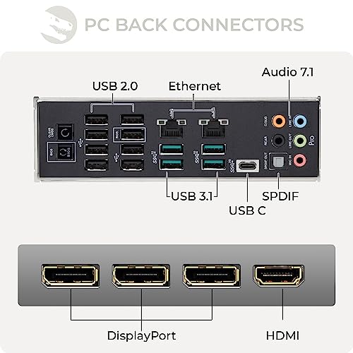 [ANSCHLÜSSE HINTEN]: 1x USB C | 4x USB 3.1 | 8x USB 2.0 | 3x Display Port | 1x HDMI | 1x S/PDIF-Ausgang | LAN 1GBit | 7.1 Audio