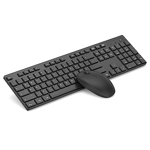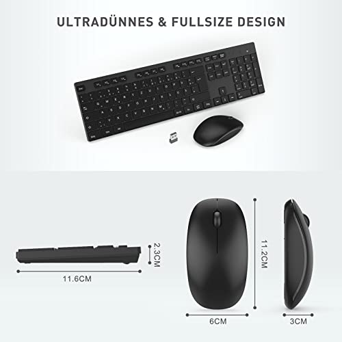seenda Kabelloses Tastatur und Maus Set, Fullsize Funktastatur mit Maus mit USB Empfänger, Leise Maus mit 1400 DPI, QWERTZ Layout Tastatur für Computer, Laptop, Windows, MacOS (Schwarz)