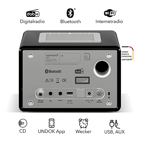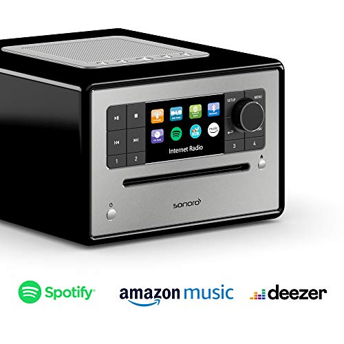 sonoro Elite Internetradio mit CD-Player & Bluetooth (UKW/FM, DAB Plus, WLAN, Wecker, Podcasts, Spotify, Amazon Music, Deezer) Schwarz