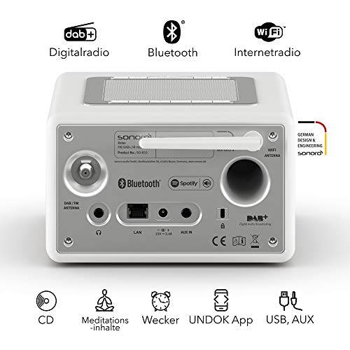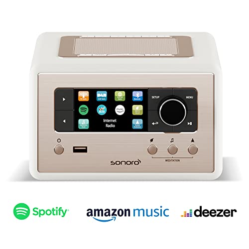 sonoro Relax Internetradio mit Bluetooth & USB (Sleep-Timer, UKW, DAB Plus, WLAN, MP3, Spotify, Amazon, Deezer, Meditation) Radiowecker in Matt Weiß