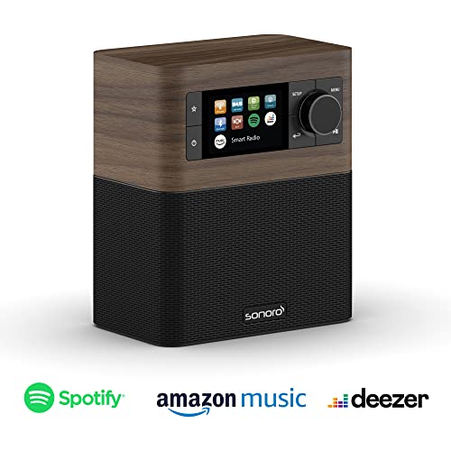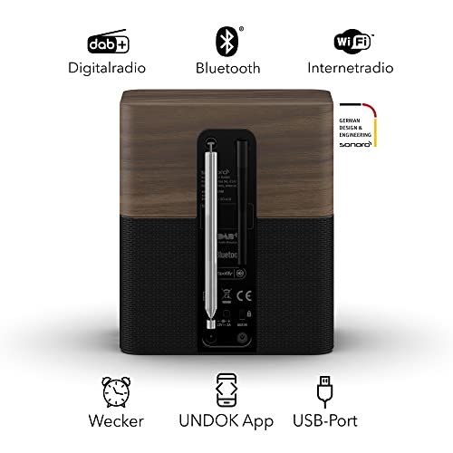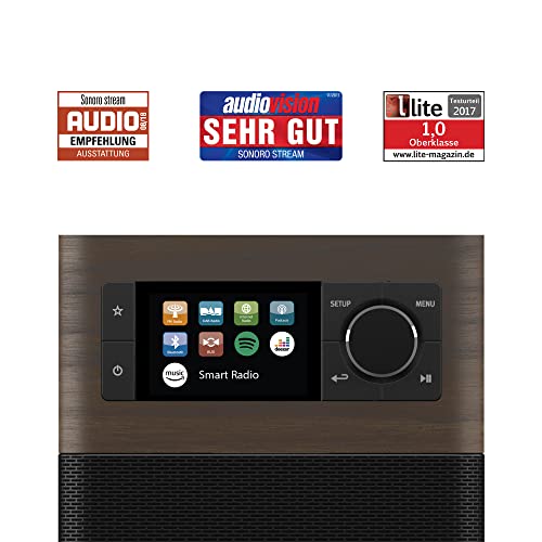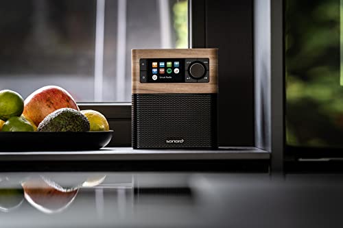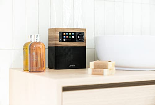 sonoro Stream Internetradio mit Bluetooth & DAB Plus (UKW/FM, WLAN, Spotify, Amazon, Deezer, App, spritzwassergeschützt) Küchenradio Walnuss/Schwarz
