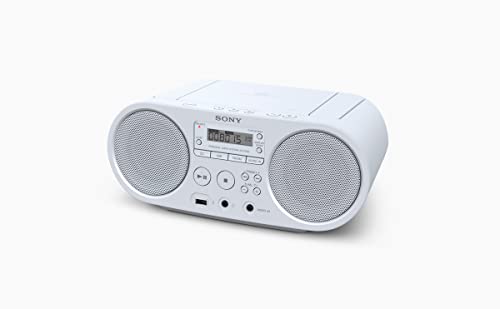 Vereinen Sie all Ihre Musiktitel mit der eleganten und intuitiv bedienbaren CD-Boombox ZS-PS50. Finden Sie Ihre drei Lieblingssender mit den Tasten zum Direktzugriff schnell und einfach, und schließen Sie Ihr MP3-Gerät zur sofortigen Wiedergabe an. Zwei zusätzliche Lautsprecher zur Verbesserung des Sounds sind im Lieferumfang enthalten, und mit dem Audioeingang können Sie sich mit zahlreichen anderen Geräten verbinden. Integrierter UKW/MW-Radio-Tuner, Audioeingang. Wiedergabe über USB. Wiedergabe von CD/CD-R. Konfigurieren Sie mit Tasten den Direktzugriff von drei Sendern.