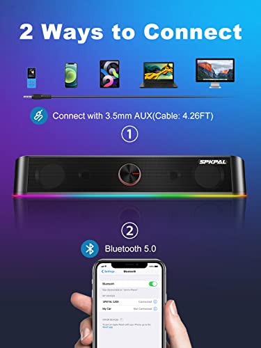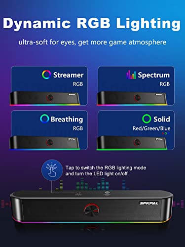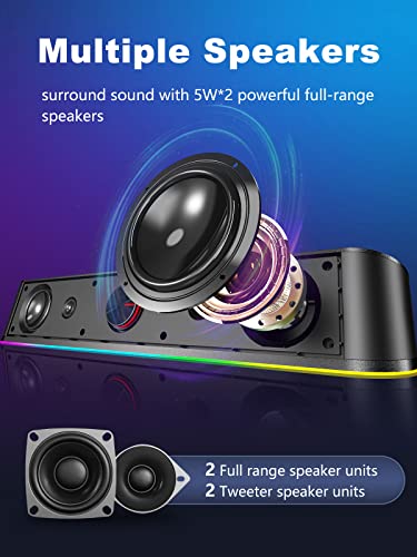 Soundbar für TV,SPKPAL10W Pc Lautsprecher soundbar mit Surround Stereo Audio Buntes RGB Licht USB ähiger 3,5mm Aux und Bluetooth 5.0 für Mobiltelefontablets Desktop Laptop
