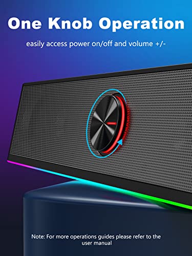 【BELEUCHTUNG FÜR JEDE VIBE】 Mit diesem RGB-soundbar pc können Sie durch 6 Modi wechseln, darunter statische, dynamische Atmung und audiosynchronisierte Beleuchtung, um das perfekte Lichtambiente und Spielatmosphäre zu schaffen. Perfekt für Ihre Häuser, Büros und Arbeitsbereiche, um eine fröhliche Atmosphäre zu schaffen.