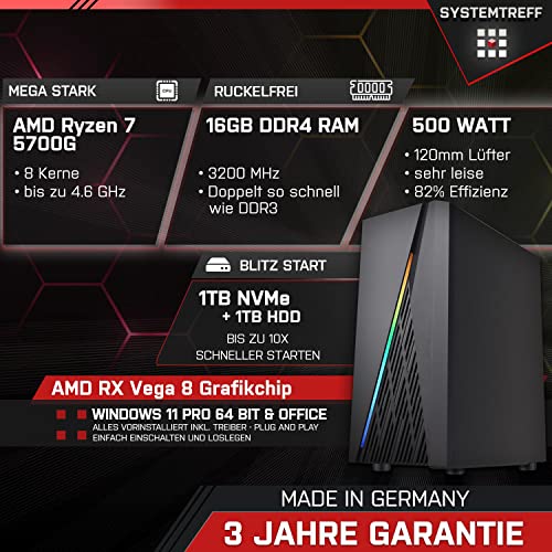– CPU: AMD Ryzen 7 5700G Prozessor mit 8 x 3.8 GHz Taktrate (bei Bedarf bis zu 4.6 GHz Turbotakt durch AMD Boost Technik)