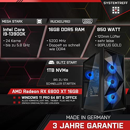 Ihr High-End Gamer Computer ist ausgestattet mit dem schnellen Intel Core i9-13900K 24×5.8GHz, sowie 16 GB DDR5 5200 MHz – Team Speicher mit Kühlkörper Arbeitsspeicher, so sorgt er für genug Performance für Windows 11 und ist ideal für Gamer geeignet, egal ob First-Person-Shooter, Role-Playing Game oder Online Games, mit dem High-End Rechner sind sie ideal ausgerüstet.
