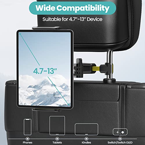 🚓【Universelle Kompatibilität】SKBSD tablet autohalterung Kopfstütze die Teleskoplänge des Klemmarms beträgt 14 cm bis 24 cm,funktioniert mit allen 4,7-13 Zoll Geräten wie 2022 iPad Pro 11, iPad Pro 10.5, iPad Pro 10.2, iPad 9.7, 2022 iPad Air 5 4 3 2, iPad mini 2 3 4 5 6, iPhone XS/XS Max/XR/X 8 7 6 6s Plus, Kindle, Fire, Zubehör, Samsung Tab, Switch, Smartphones und anderen Geräten.