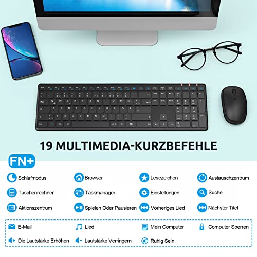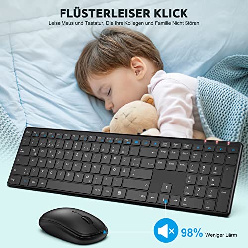 【Silent Touch Tasten】Das Scherenfuß-Design der Drahtlosen Tastatur, Erlebe das volle Klick-Gefühl mit 98 % weniger Störgeräuschen für bessere Konzentration, Sorgt für Ein Angenehmes Tipperlebnis.