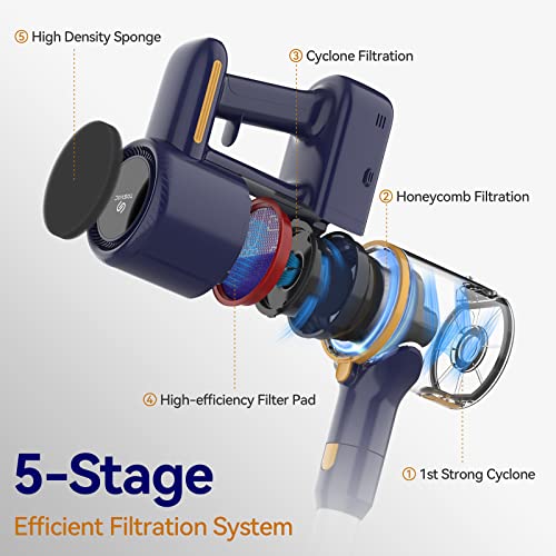 TASVAC Akku Staubsauger Kabellos, 22Kpa mit Bürstenloser-Motor, 40 Min Laufzeit, 6 in 1 Akkusauger Beutelloser Stielstaubsauger für Hartböden Teppich Tierhaare, 180° Faltrohr