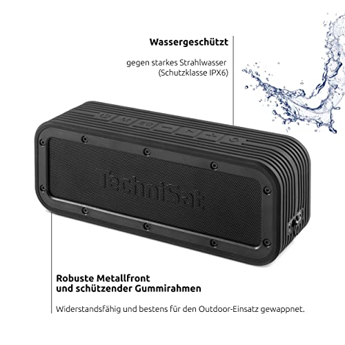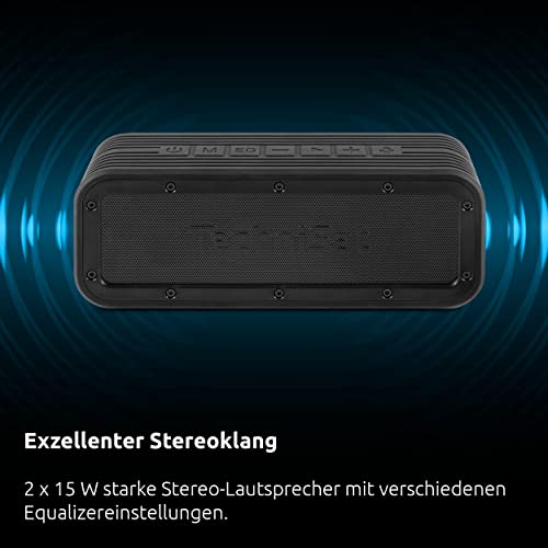 Kraftvolle Leistung: Die Bluetooth-Box spielt Musik drahtlos in exzellenter Stereoqualität auf je 2 x 15 Watt starken Lautsprechern ab / Praktisch: Freisprecheinrichtung mit integriertem Mikro