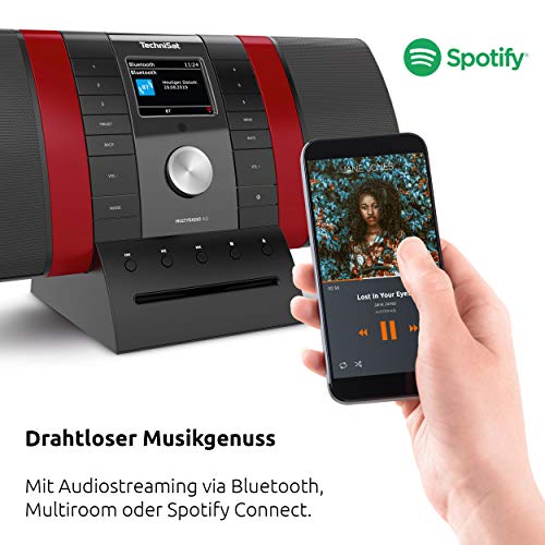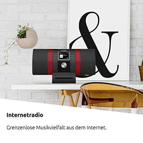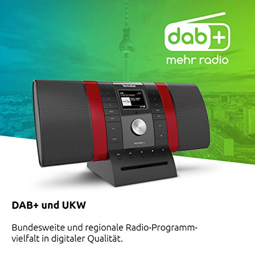 TechniSat MULTYRADIO 4.0 – Internetradio (WLAN Radio, DAB+, UKW, Alexa Sprachsteuerung, Spotify, Bluetooth, CD-Player, USB, Farbdisplay, Musikstreaming, 2 x 10 Watt Stereo Lautsprecher) schwarz/rot