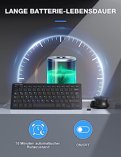 🟢【KOMPATIBILITÄT & ZUVERLÄSSIGER SERVICE】Die TECKNET kabellose Tastatur- und Mauskombi unterstützt Windows 11/10/8/7/XP/2000 und funktioniert mit Laptop, Desktop-PC und Chrome Book. Die Tastatur benötigt 2 AAA-Batterien und die Maus 2 AAA-Batterien (nicht im Lieferumfang enthalten).