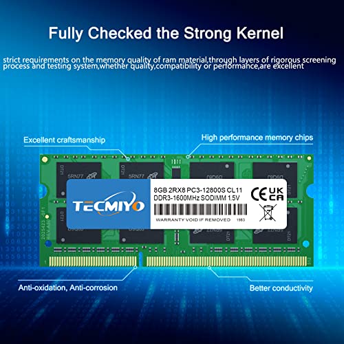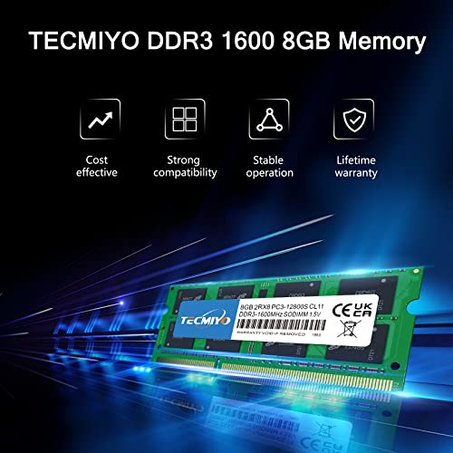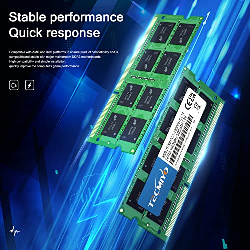 TECMIYO PC3 12800s 16GB DDR3 1600 Arbeitsspeicher Speicher RAM KIT(2X8GB) 1.5V Non-ECC Ungepufferter PC3-12800s DDR3 1600MHz SODIMM CL11 Laptop Arbeitsspeicher RAM