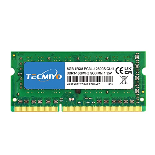 TECMIYO Ram 1RX8 PC3L 12800S 8GB DDR3 1600 RAM (1X8GB) 1.35V/1.5V PC3-12800s DDR3 1600MHZ SODIMM CL11 Non-ECC Unbuffered Laptop Ram Speicher Arbeitsspeicher für Apple MacBook Pro iMac Mac Mini