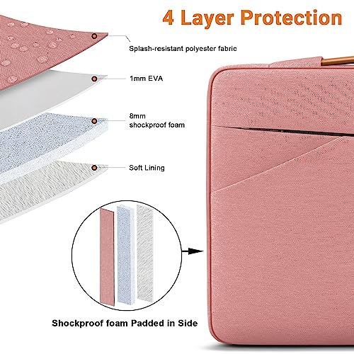 TECOOL 14 Zoll Laptop Tasche Hülle Laptoptasche für 14 Zoll Lenovo HP Dell Acer Asus Notebook Chromebook, 15 Zoll MacBook Air M2 Wasserdicht Notebooktasche Stoßfestes Schutzhülle, Rosa