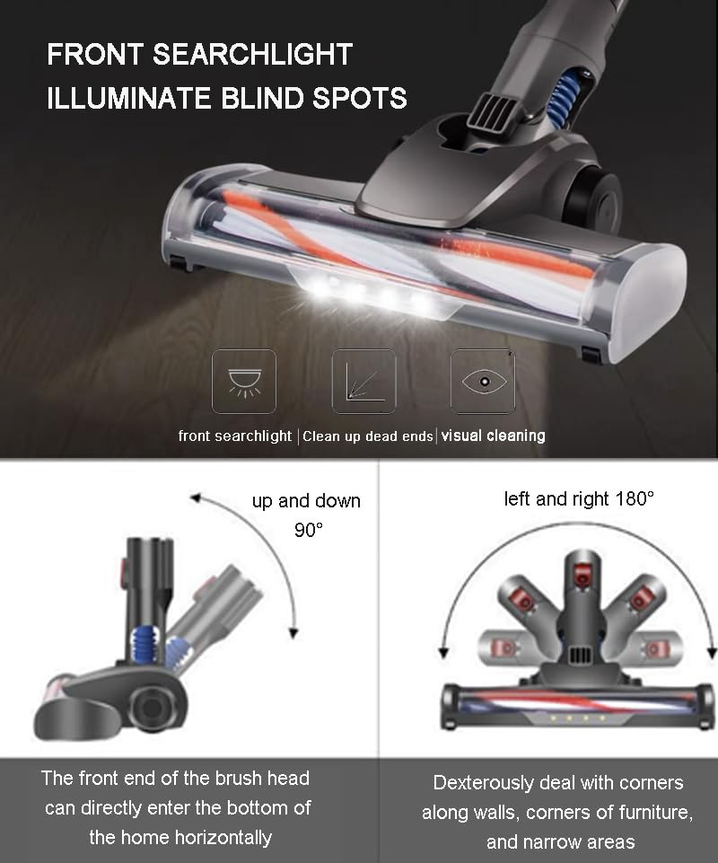 【Verbesserter bürstenloser Motor】Der leistungsstarke 7-in-1-Staubsauger mit bürstenlosem Motor kann 85.000 U/min erreichen und bietet eine starke Saugkraft, die auf Hartholzböden, mittleren und niedrigen Samtteppichen, Keramikfliesen, Marmor usw. anwendbar ist.