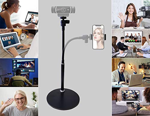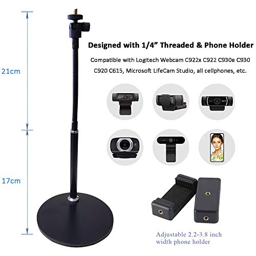Kompatibilität: Flexibler Desktop-Ständer mit 1/4 Standardgewinde und verstellbarer 2,2-3,7 Breite Handyhalterung, speziell für Logitech Webcam C922x C922 C930e C930 C920 C615, Microsoft LifeCam Studio, alle Handys und andere Geräte mit 1/4 Gewindeloch