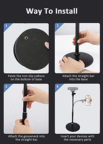 Tencro Webcam Ständer, Handyhalterung, flexibler Desktop-Ständer, Schwanenhals Handy-Ständer, Halter für Handys, Logitech Webcam C930e C920s C920 C615 und andere Geräte mit 6,35 mm Gewinde Eigenschaften: speziell für alle Handys, Gopro, Logitech Webcam C925e, C922x, C922, C930 E, C930 , C920, C615, Microsoft Lifecam Studio und andere Geräte mit 6,35mm Gewinde Mit notwendigen Kits, funktioniert für GoPro 7 6 5 4 3 2 1 Session und andere Action-Kameras. Hergestellt aus hoch mit einem schweren Metallfuß, sehr robust und langlebig. Mit einer rutschfesten Baumwolle in voller Größe auf der Unterseite, bewegt es sich ohne Lärm und hinterlässt keine Kratzer auf dem Tisch. Der Kugelkopf des Stativkopfes kann 360 ° horizontal und 140 ° vertikal für eine bessere Nutzung gedreht werden. Kommt mit einem verstellbaren 2,2-3,8 Zoll breiten Handyhalter, geeignet für alle Handys. Weit verbreitet für Geschäfte, Heimstudio, Bühnen, Radio- und Videoaufnahmen, Live-Streaming, flach liegen, Selfie-Fotos, Filme usw. Spezifikationen: Material: hohe Anschlussgewindegröße: 1 4 Standard-Gewindeständergröße: 37,5 cm x 15 cm. Handyhalter: 5,6 cm bis 9,7 cm verstellbar. Lieferumfang: 1 x Staright-Stange, 1 x Schwanenhals-Arm. Handyhalterung