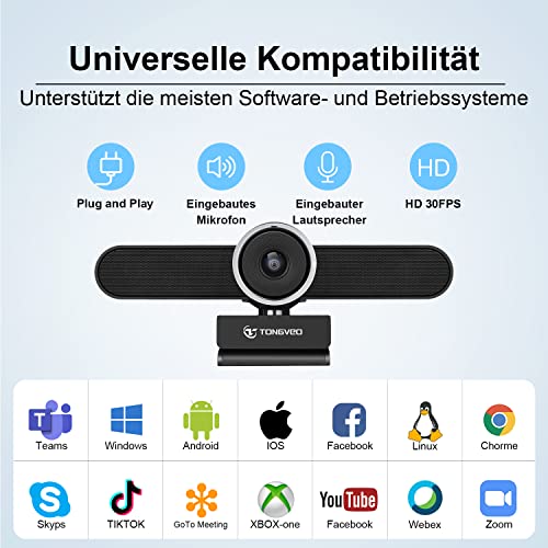 Kompatibel mit PC, Mac, Laptop, Konferenz-Apps. Egal, ob Sie einen Anruf von zu Hause aus oder Treffen mit Kollegen im Büro haben, unsere Videokonferenz-Webcam könnte mit Online-Software, Zoom, Skype, Google-Treffpunkt, OBS, Cisco WebEx, Microsoft-Team, Getomeeting, BlueJeans usw. arbeiten. Webcam funktioniert gut mit Windows XP, Vista und 7/8 / 8.1 / 10, Mac 10.4 oder höher, es eignet sich für Laptops, LCD, Desktop oder Monitore.