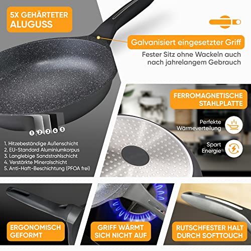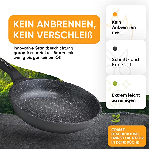 𝐊𝐑𝐀𝐓𝐙𝐅𝐄𝐒𝐓 & 𝐀𝐍𝐓𝐈𝐇𝐀𝐅𝐓: Überzogen mit einer erstklassigen Antihaft-Beschichtung brauchst du dir nie wieder Sorgen um angebranntes Essen machen! So kannst du bereits mit wenigen Tropfen Öl in der Pfanne Gemüse oder Steaks auf den Punkt genau anbraten!