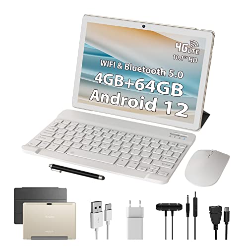 TOSCIDO Tablet 10 Zoll Android 12 4G LTE, Octa-Core 2 GHz, 4 GB RAM+64 GB ROM (TF 1 TB) 8000 mAh, GPS, Bluetooth 5.0, WLAN, Tablet mit Tastatur+Maus, Schutzhülle, Stift,