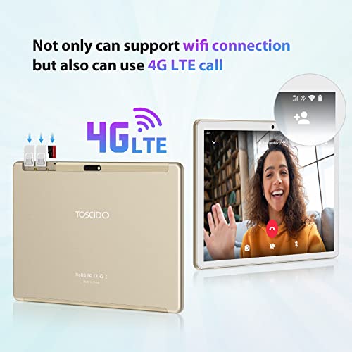 【4G LTE+ Neuestes Android 12-System】 TOSCIDO Tablet PC ist mit dem neuesten Betriebssystem Android 12, zertifiziert von Google GMS, der neue Google Store ist bequem zum Herunterladen verschiedener Software, breit und vollständig kann mit Google-Apps kompatibel sein, experimentieren und jede gewünschte App herunterladen. Doppelte SIM-Kartensteckplätze ermöglichen es Ihnen, Anrufe zu tätigen und im Internet zu surfen, Sie können überall über SIM-Karte oder Wifi auf das Internet zugreifen