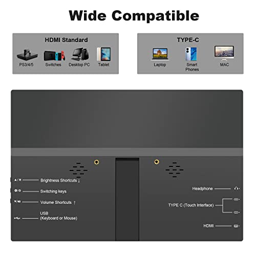 【Wide Compatibility】: Tragbares Display mit HDMI, USB-C-Anschlüsse machen es einfach Verbindung mit Laptops, PCs, Telefone (nicht enthalten iPhone) , Gaming-Geräte, ideal für die Erweiterung Ihres Bildschirms oder Spiele auf Geschäftsreise, Reisen oder Home Entertainment.