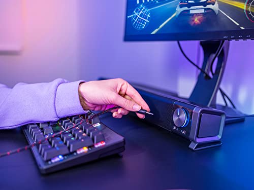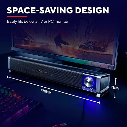 Eleganter horizontaler Gaming-Lautsprecher, für perfekte Integration unter jedem PC-Monitor oder TV-Bildschirm konzipiert