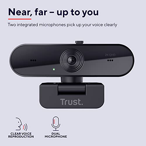 Trust Taxon 2K QHD Webcam aus 85% Recycling-Kunststoff, 2560x1440p USB Kamera PC mit Abdeckung, Autofokus, Weitwinkel, 2 Mikrofone, Videokamera für Konferenzen, Videoanrufe, Skype, Teams, Zoom